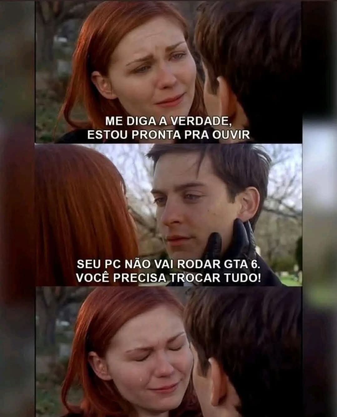 Quiero empezar a hacer aquí en mi PC también mi actualización. Creo que no va a necesitar muchas cosas. A decir verdad, ni siquiera he mirado los requisitos mínimos. Actualmente tengo una 3060 Palit que ha corrido todo lo que juego ahora mismo, y todo configurado al máximo. También tengo un SSD de 1 TB. Espero que el GTA 6 pese menos de 300 GB.