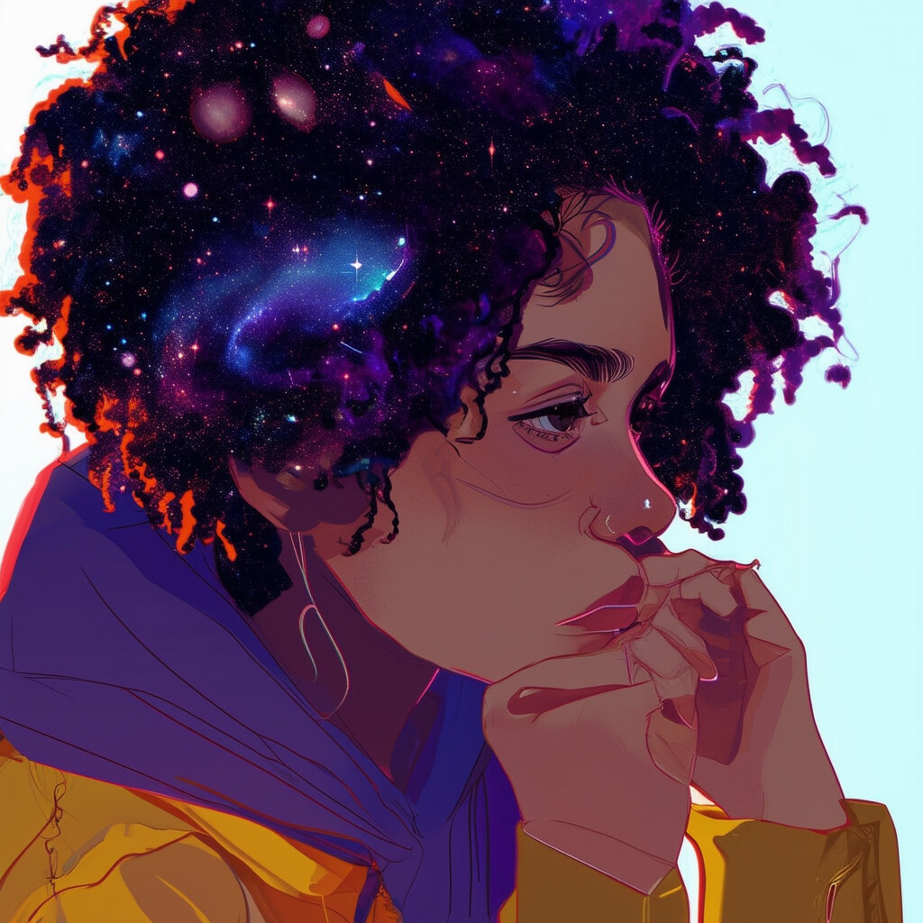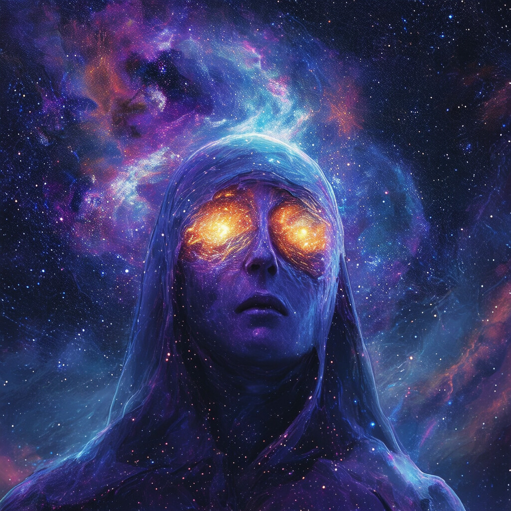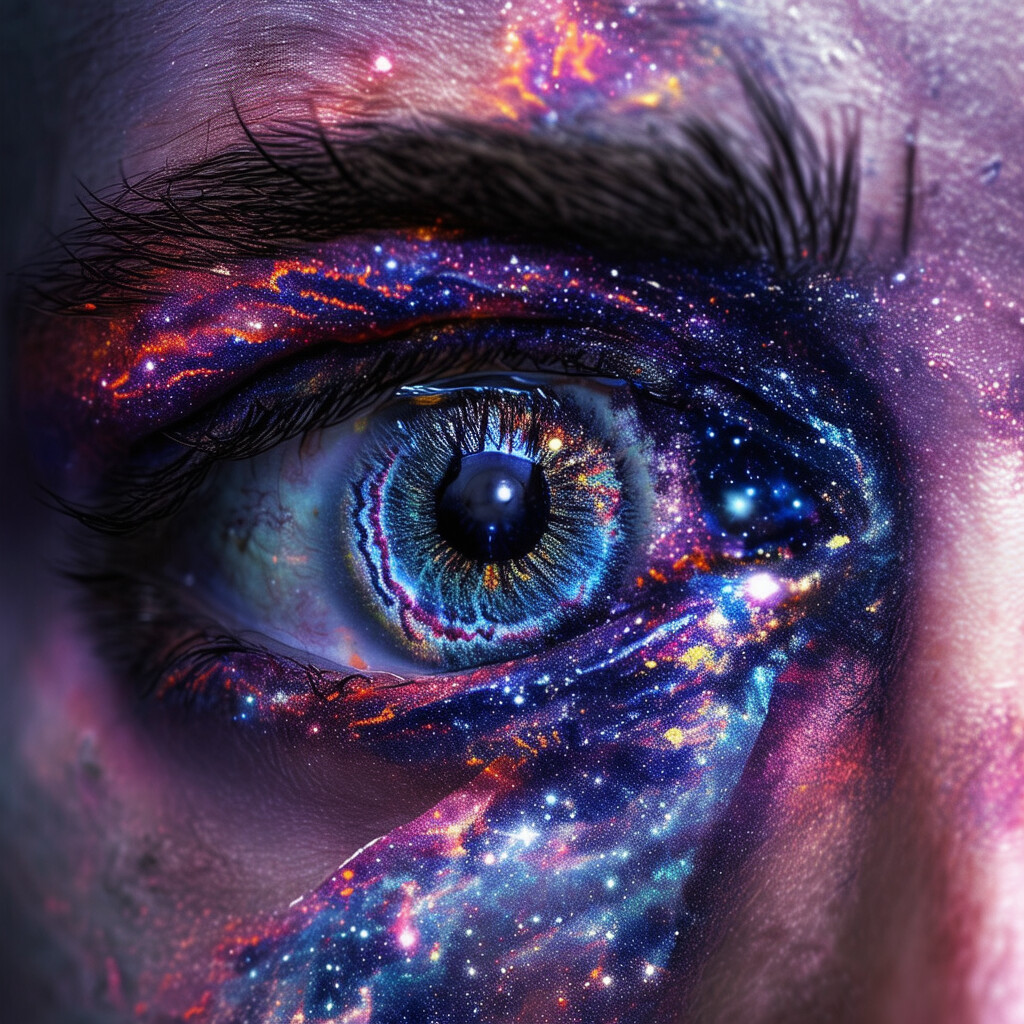 @Artista haz a una persona con los ojos con la esclerótica al estilo de la galaxia