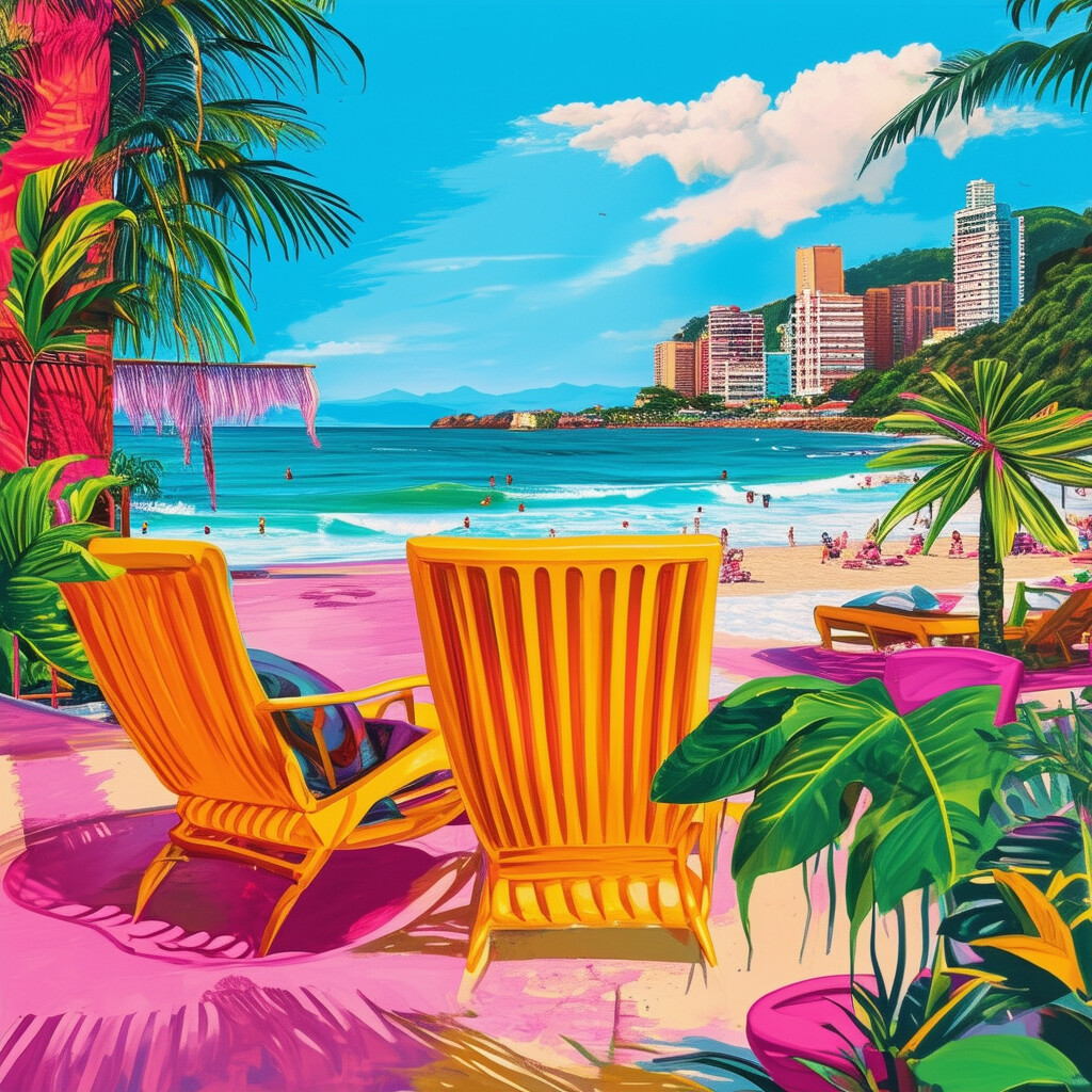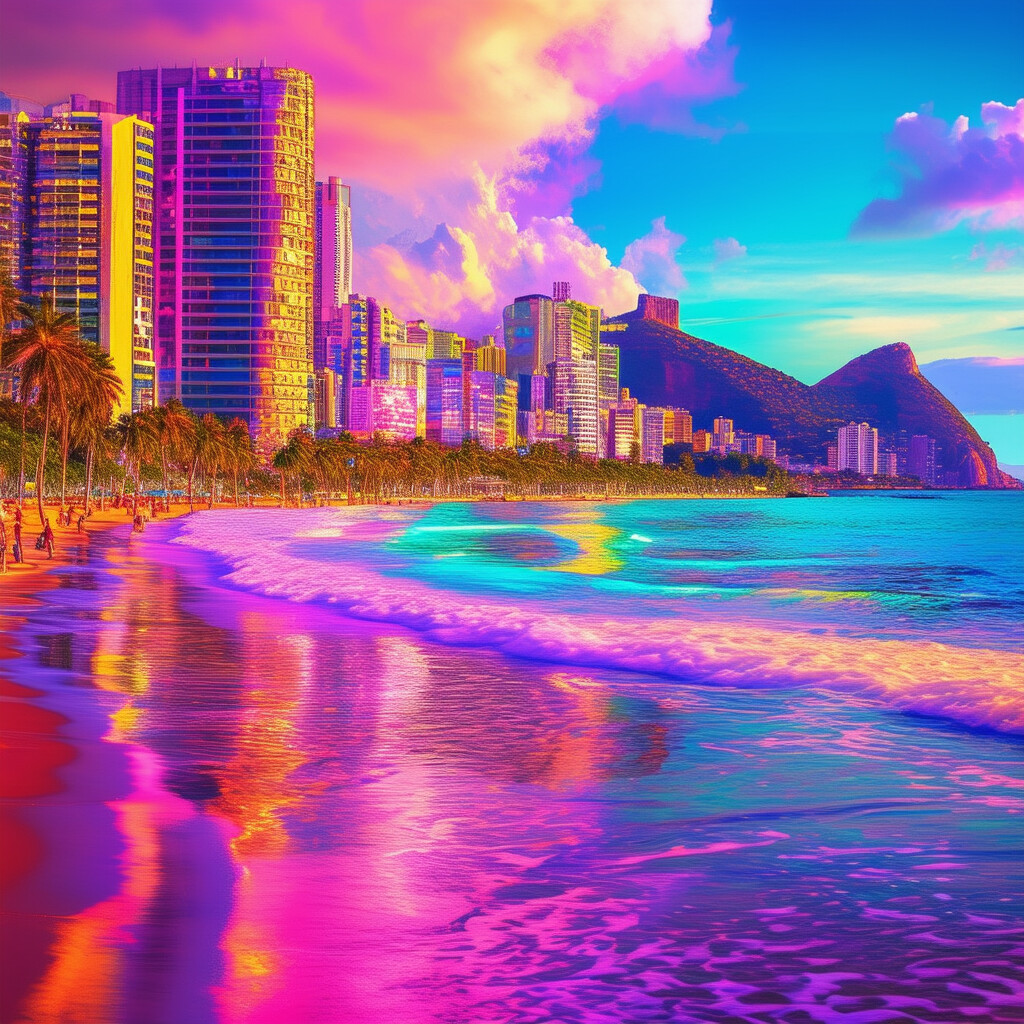 @Artista hace la playa de Leblon con colores vivos en un tema futurista
