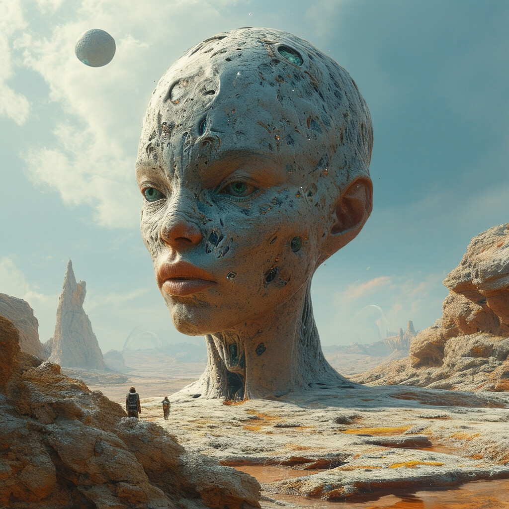 @Artista Crea una imagen de cómo sería la humanidad dentro de 100 años. Muestra a la gente en un planeta que no ha sido descubierto en la época actual. Muestra a los humanos con una nueva fisonomía, mucho más inteligentes, y cómo la tecnología fue beneficiosa para la humanidad.